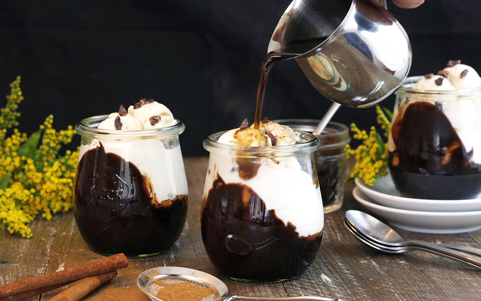Tento skvelý nápoj je perfektným dezertom v teplom dni. Affogato v preklade znamená „utopiť„, čo v tomto prípade znamená utopený kopček zmrzliny, ktorý v spojitosti s espressom dodáva celému drinku nezabudnuteľný gastronomický zážitok. Pre doladenie estetiky a chuti odporúčame ozdobiť tyčinkami škorice a pomarančovou kôrou.