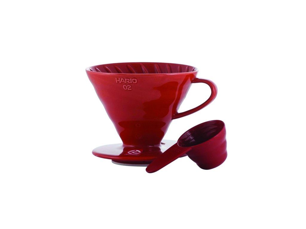 Hario V60-02 keramický dripper červený. Najznámejšia a najobľúbenejšia príprava kávy pomocou dipperu aj u Vás doma v červenom prevedení.
