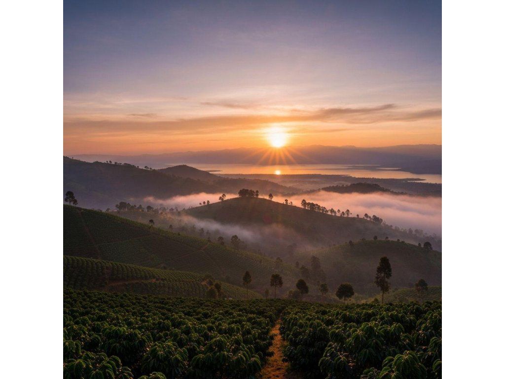 Na severe Rwandy, v kopcovitom regióne Gicumbi, sa káva pestuje vo výškach, kde sa ráno krajina stráca v hmle a popoludní ju zalieva ostré africké slnko. Táto kombinácia vytvára ideálne podmienky pre pomalé dozrievanie čerešní – a práve to je kľúč k výraznej, šťavnatej chuti.